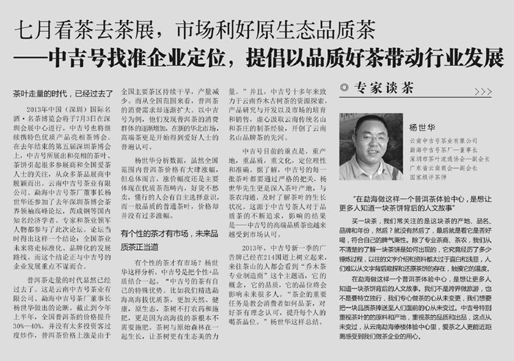 - “南都報”專題四:中吉號開普洱茶SPA級體驗先河